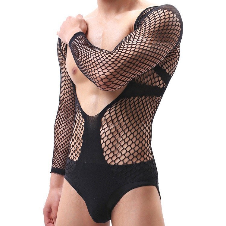 An ultra-seductive one-piece with an open fishnet texture and a daring silhouette.