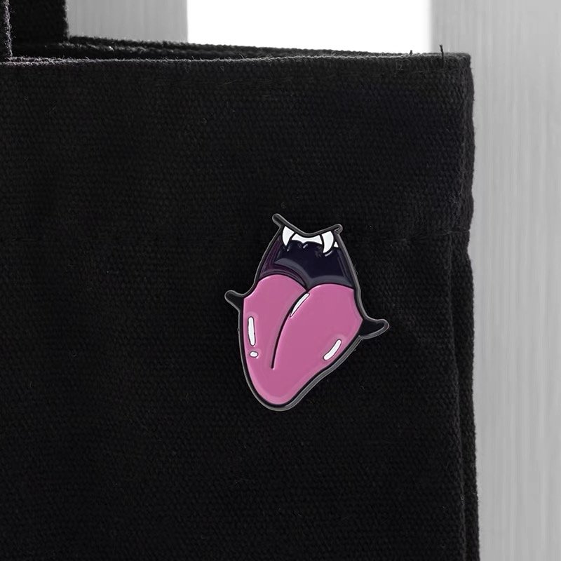 Show off your rebellious side with the bold “Vampire Tongue” Enamel Pin. This edgy accessory features a stylized mouth with a long, purple tongue sticking out and a set of sharp, white fangs. With its strong black outline, this pin is the perfect way to add a bit of punk-rock attitude to your jacket, bag, or hat.